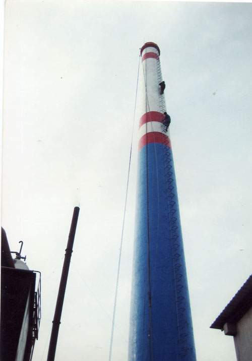 青岛碱业股份公司 150m砼烟囱避雷系统维修、安全走台更换工程